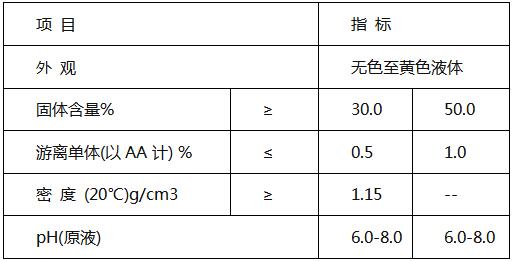 PAAS無(wú)毒,易溶于水,可在堿性和中濃縮倍數(shù)條件下運(yùn)行而不結(jié)垢。能將碳酸鈣、硫酸鈣等鹽類的微晶或泥沙分散于水中不沉淀,從而達(dá)到阻垢目的;也是一種常用的分散劑,除用作電廠、化工廠、化肥廠、煉油廠和空調(diào)系統(tǒng)等循環(huán)冷卻水系統(tǒng)中的阻垢分散劑;廣泛應(yīng)用于造紙和紡織印染、陶瓷、涂料、建材等行業(yè)。